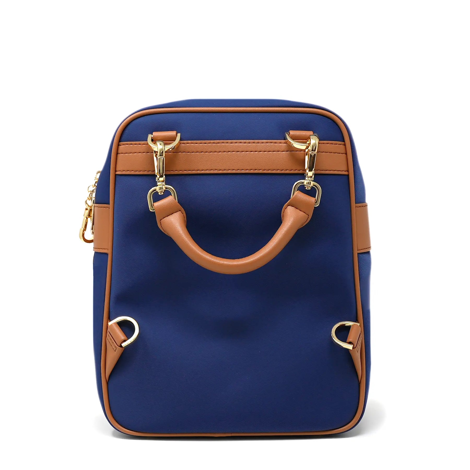 Carmel Convertible Backpack Wide Strap Classic Brown Gold Front View